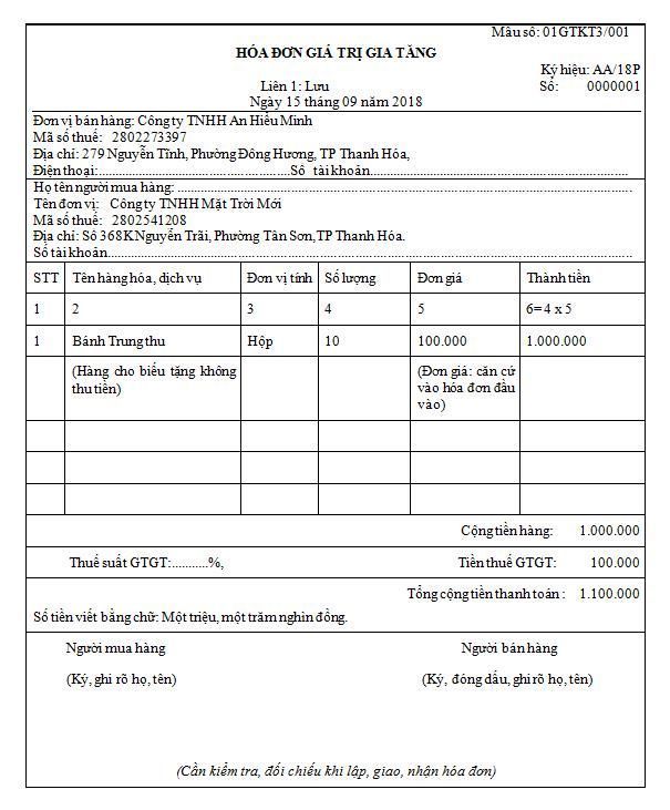 2. Cách viết hóa đơn hàng cho biếu tặng