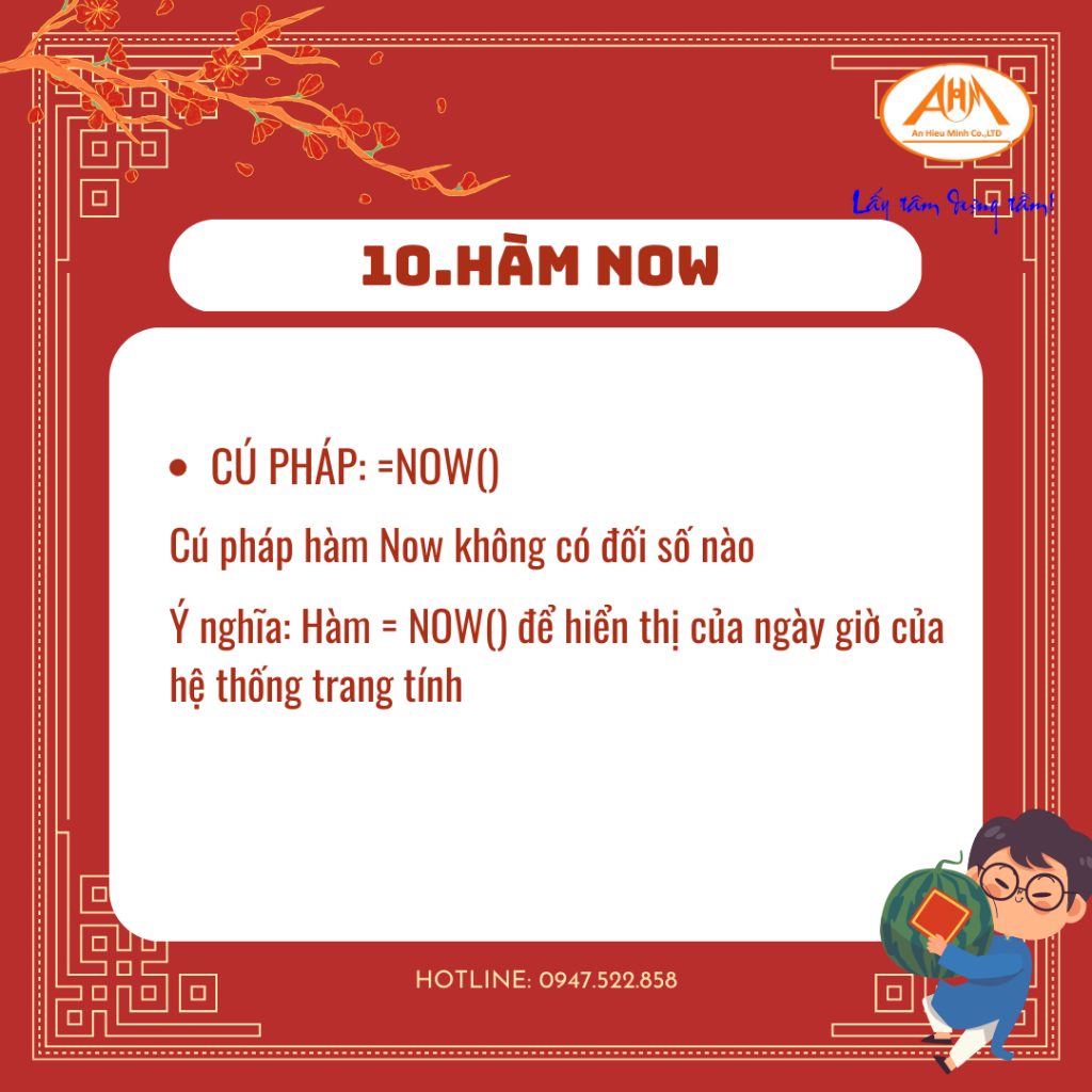 Ý nghĩa: Hàm =NOW() để hiển thị ngày giờ của hệ thống trong tính. Ví dụ như sau:
