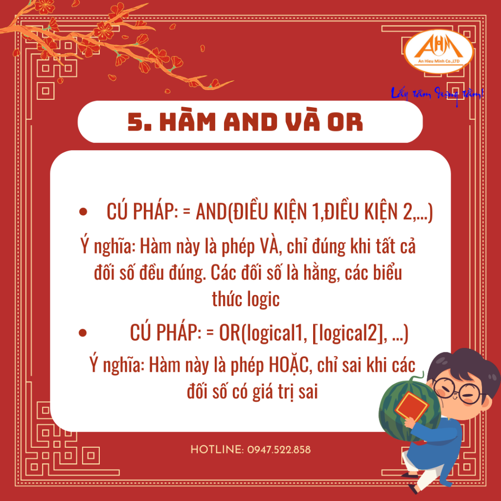 Ý nghĩa: Hàm này là Phép VÀ, chỉ đúng khi tất cả các đối số có giá trị đúng. Các đối số là các hằng, các biểu thức logic